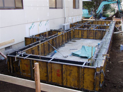 前回話した鉄の配筋は全てコンクリートの中に埋もれてしまいました。