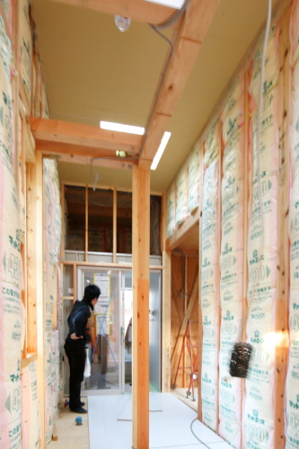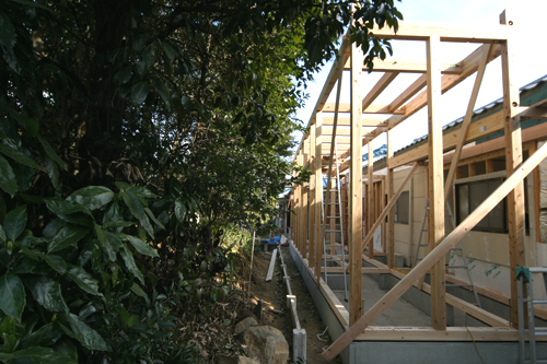 本日で増築部分の軸組工事が完了。2月初旬の完成まで、寒さピークの時期での施工ですが、職人のみなさんヨロシクお願いします!!
