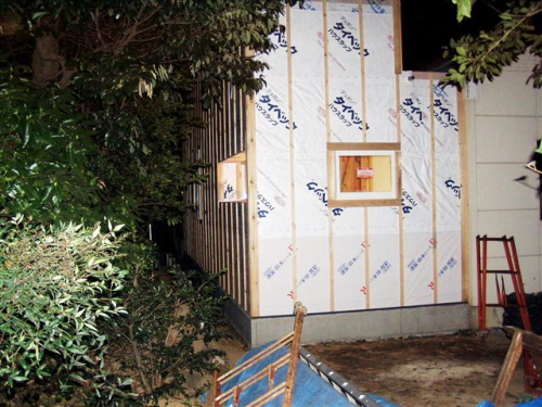 ユニットバスも設置が終わり今後外部は防水シート、内部は断熱材充填作業に入ります。