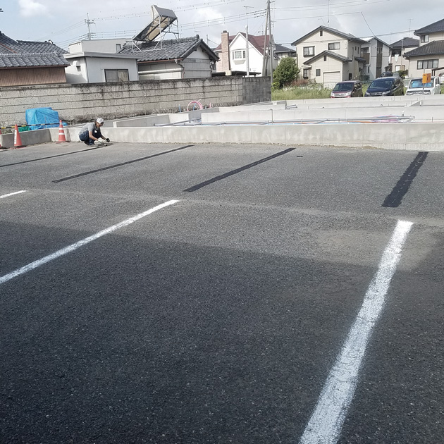 医院定休の日曜、暑いので早朝からタカと駐車場のライン引き&消し。