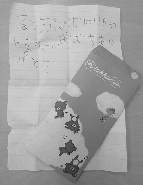 美味しいケーキもいただき帰ろうとした際、ご長男から手紙のプレゼント。