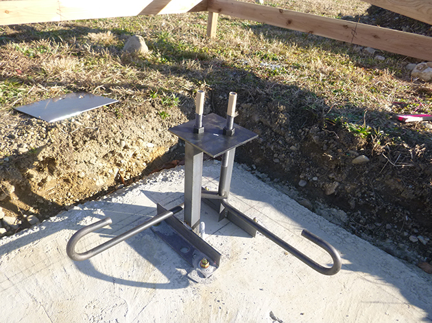 今回は基礎立ち上がりがなくアンカー位置がかなりシビアな為、特注で「アンカープレート」を作成しました。
