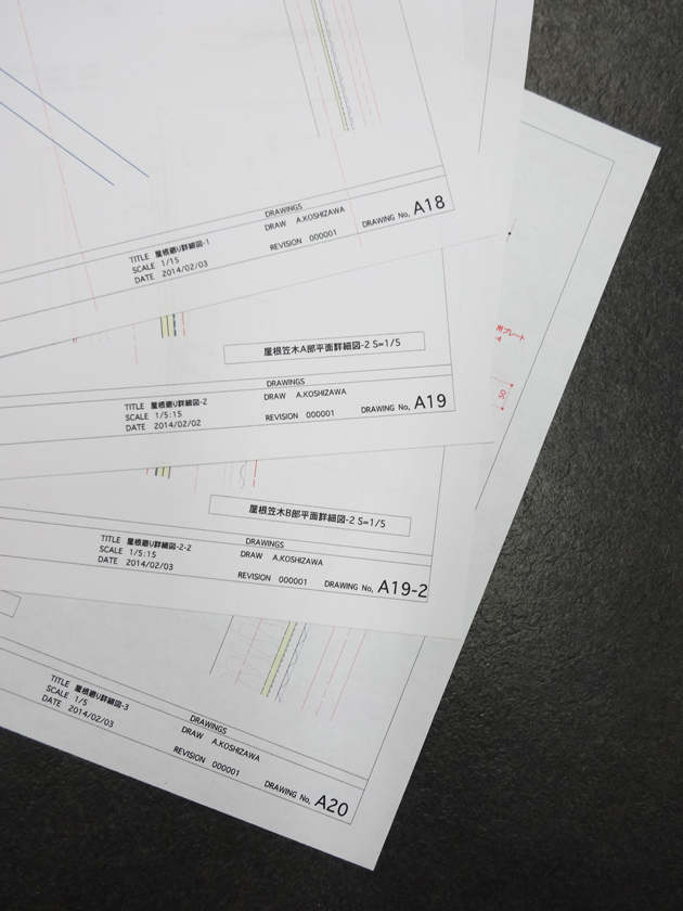 小さくシンプルな構成なのですが、非常にシビアな納まりの多い住宅になっているため事前に決めておきたい箇所が多々多々あり監督による施工図は早くも20枚・・・こうしてブログを書いている間にも続々届き30枚近くに。