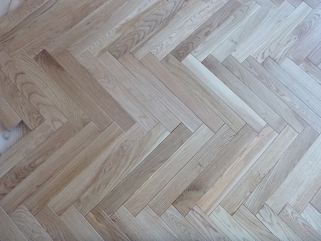 LDKにはオークの無垢材を使用しているのですが、今回こだわったのはヘリンボーン貼り。
