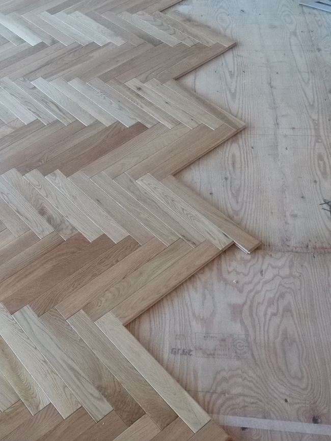 写真の様にフローリング材をV字に組み合わせる、大工さん泣かせの施工方法です。