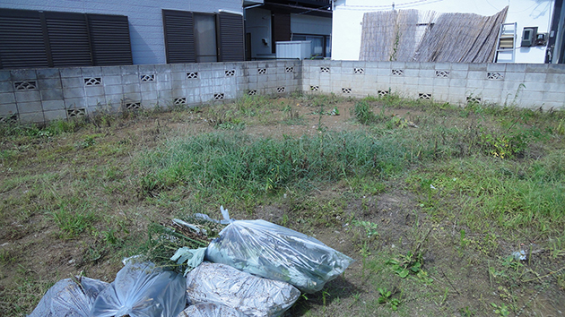 しばらく放置していた敷地はこの暑さで草木が伸び放題。