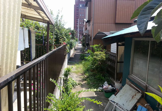 気になる土地が見つかり、すぐ施主さんと現地へ。広い道路に面した熊谷駅近くの良い土地ですが、この道?何だ?