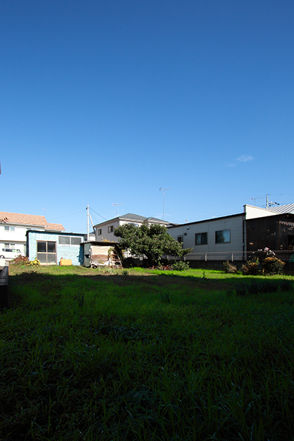 敷地延長で奥まった、真南に住宅の建つ敷地。冬なのと、少しオーバーに撮影したせいもありますが、結構な影。