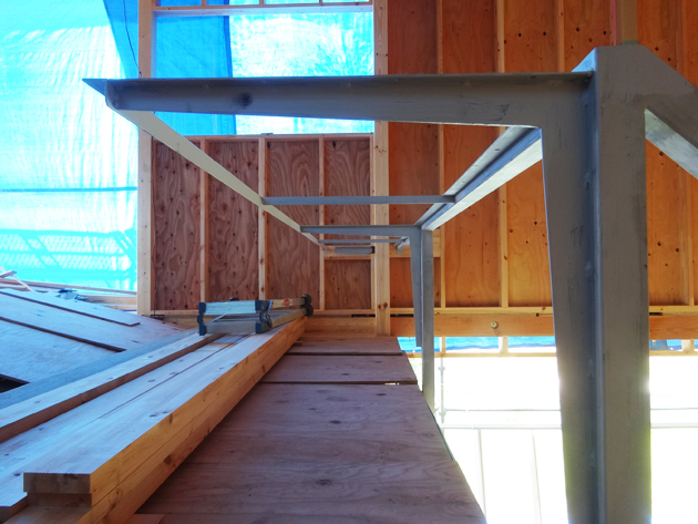 階段手摺 兼 2階手摺 兼 カウンターフレームの鉄骨工事もバッチリ納まりました。