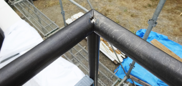 手摺突付仮溶接(鉄骨工事) 少しのずれもありません。