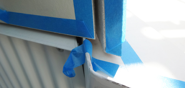 外壁鋭角部分(板金・外壁工事) こちらも角度に併せてサイディングをカット、水の逃げも板金でバッチリです。