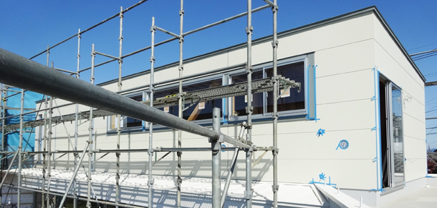 外壁の目地もサッシのラインに併せています。サッシ取付け前の入念な高さ検討がこの納まりを可能にしてくれます。