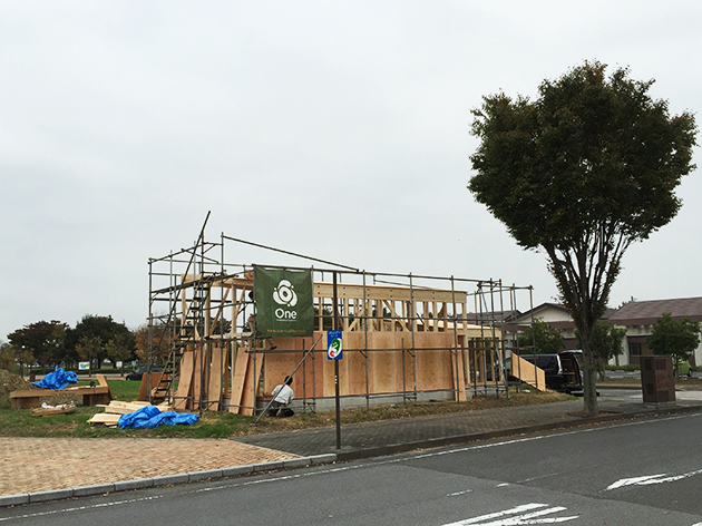 コンパクトなサイズの為、一日で屋根・外部の合板下地まで進みます。