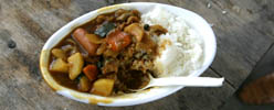 昼はCAMPINドロブックルでカレー作り。山からマキを集めて火をおこし、ハンゴウで米を炊く。途中アクシデントもありましたが『土呂部具沢山カレー』が無事完成!
