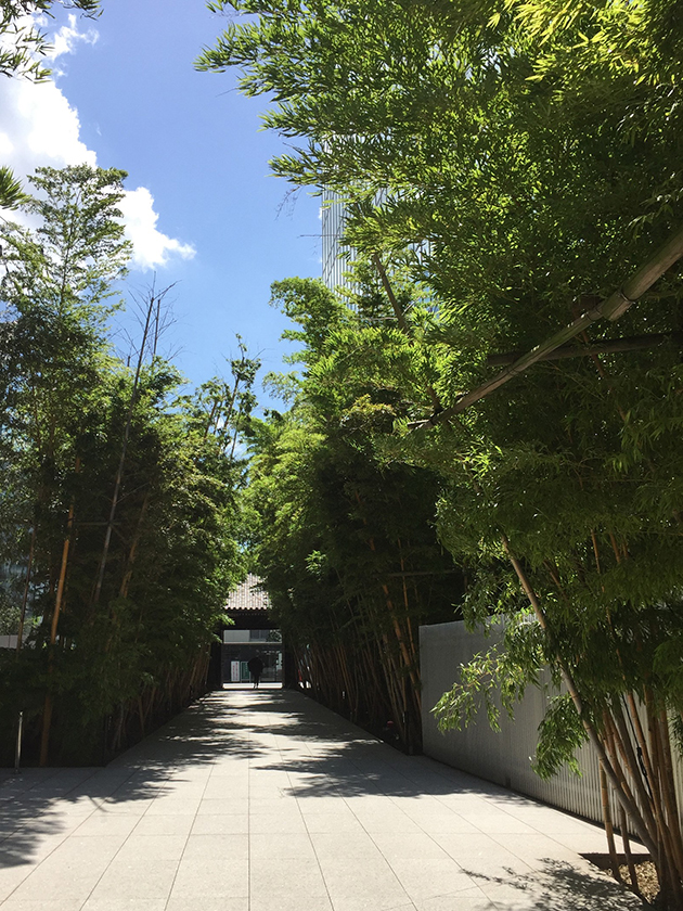 境内へと続くアプローチは竹がせり出していて、周りのビル群とのギャップが心地よく感じました。
