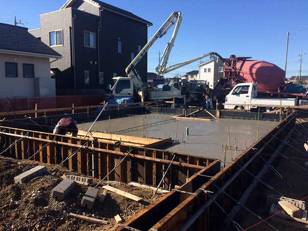 基礎打設は、暖かい気候の中行われ、テンポ良く、スムーズに進みました。