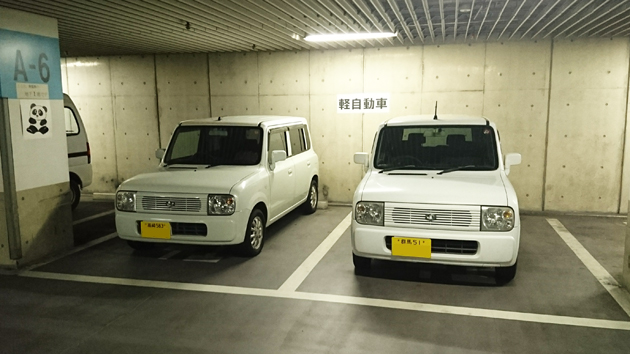 地下駐車場に戻ると私のラパン(右)の隣に同じ年式、色のラパン。