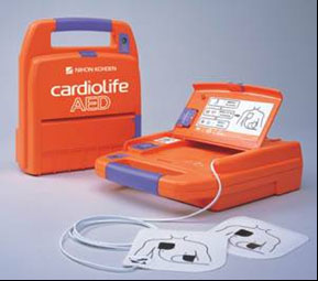 心臓に電気ショックを与える医療機器です →