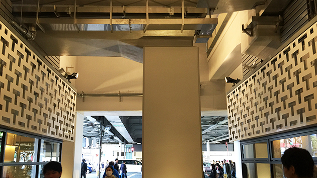 暗いイメージの高架下を、間接照明や素材によって雰囲気ある空間に演出していたのが印象的でした。