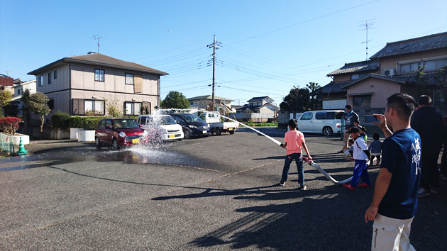 途中子供達にも放水を体験してもらい未来の団員育成も忘れずに。