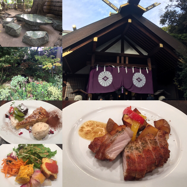 その後、友人の勧めで東京大神宮へ。毘沙門天は知ってましたが駅の反対にあるのは初めて知りました。パワースポットがあるようで大盛況!みんな水辺のスポットを撮っていましたが、写真の石のテーブルもパワースポットのようです。