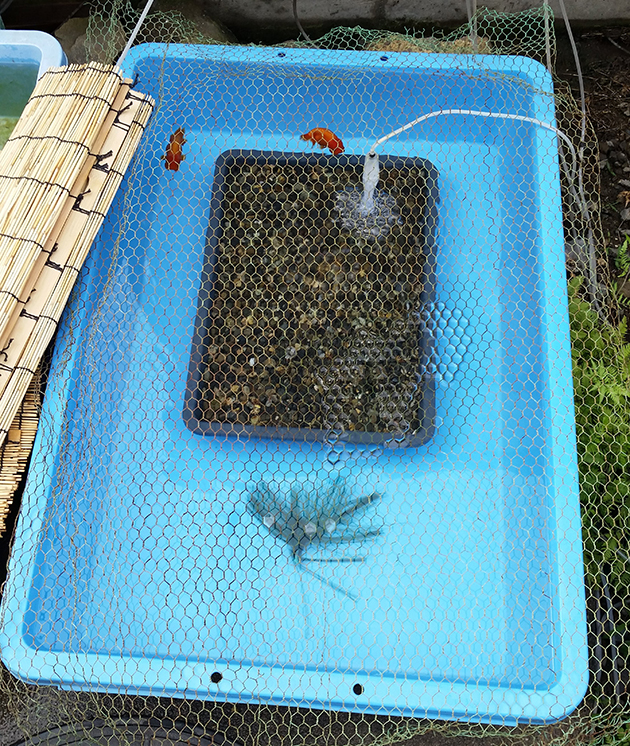 何故6月いっぱいなのかと言うと、野外飼育なので7月に入ると水温が40度を超えてしまうこと、産まれた稚魚が冬越しできる大きさまで育たない事が主な理由です。