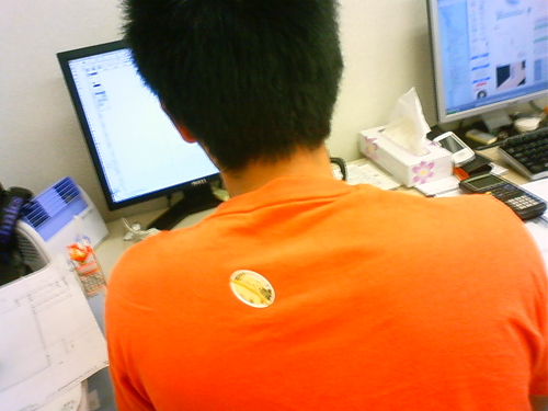 LOOP内にも夕張メロンを発見!? いい歳して悪戯好きのアキラかタカヒロがやったのでしょう。エイジの背中にメロンのシールが...。午前0時を回ってもまだ張ってあります。