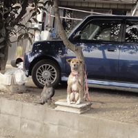 始めはとなりの狸の置物とあいまって無生物だと思ったのですが、リアル犬。