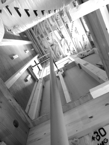 この登り棒は旦那さんの昔からの夢で3階の納戸から2階の寝室までを繋いでます。