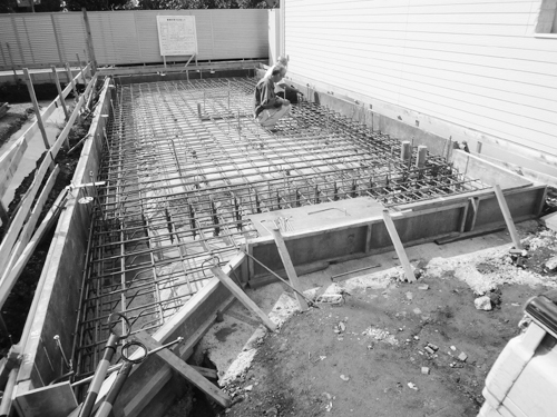 配筋のピッチ、太さ、かぶり等を見ながらスリーブ周りに補強筋を入れてもらったり。