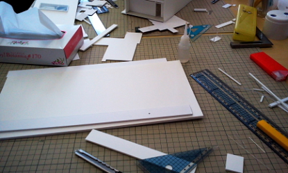 4月7日模型作り開始です。図面がとても忙しいので任せてくれればいいのですが、建築家タカヒロは自らカッターを引きます。模型を作るということは、施工の納まりなどの確認にもなりますからとても良いスタディ。