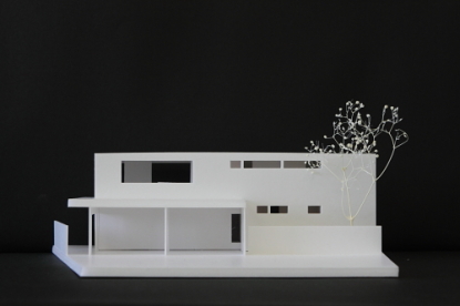 前回の提案から新しく出てきた施主さんの要望を反映した第2案のプレゼンテーション。平面図、立面図、配置に1/100の模型を使いながら打合せ。
