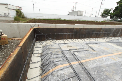北西の角。基礎の鉄筋が少しずつ並べられていきます。