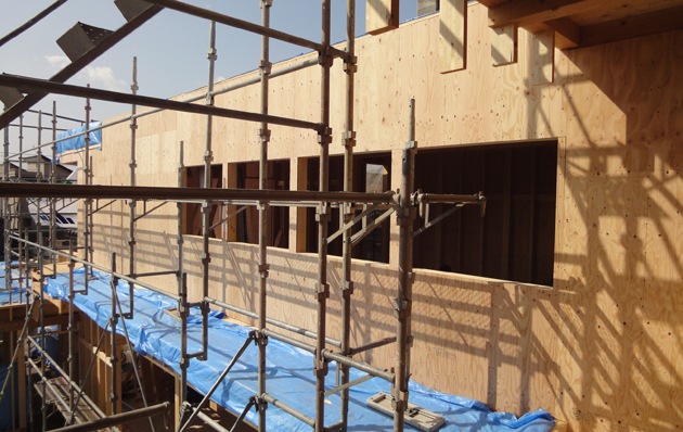 現場は屋根の水勾配や壁合板を進めています。