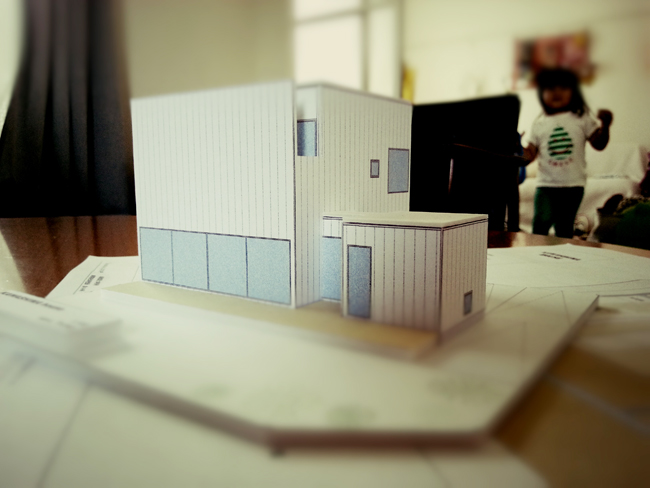 土地の融資も午前中に無事実行され、一段落。午後はボリューム模型でマサルと打合せへ。