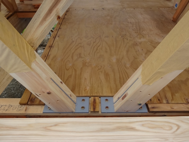 2F四隅が跳ね出し、製作金物を使ったV字筋交い等もあるため初めての試みへの指示を色々と頂いてます。