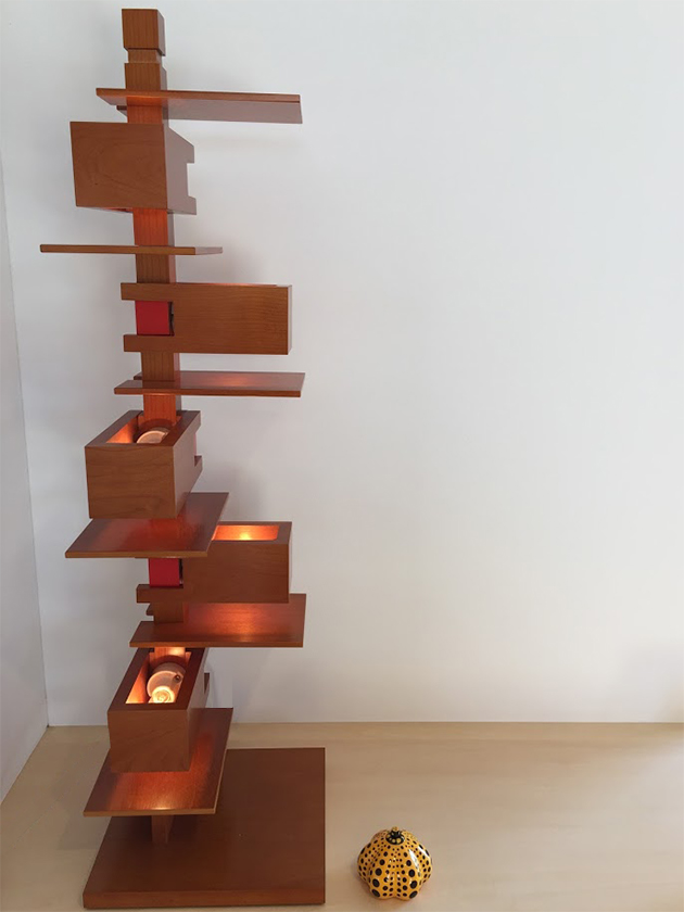 玄関正面に置かれたタリアセンと草間彌生さんのオブジェ。