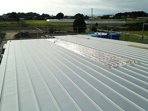 先日のブログの天窓部分はポリカーボネートの折半屋根となっています。