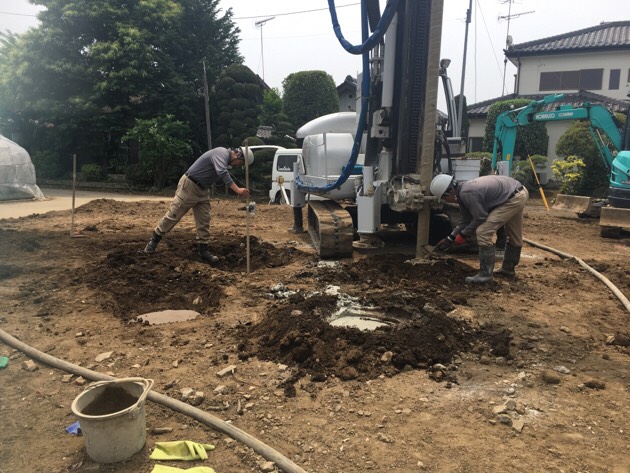 今回は柱状改良で、セメントの柱によって安定的な地盤を作り上げます