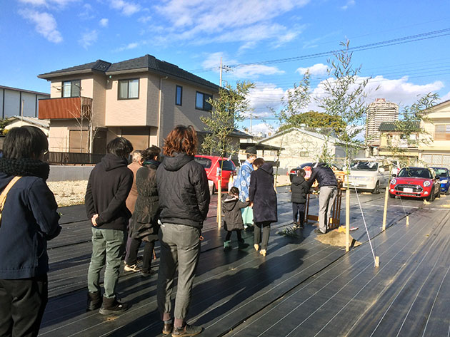 風が強く冷たく寒さの厳しい中でしたが、無事地鎮祭を迎えることができました。