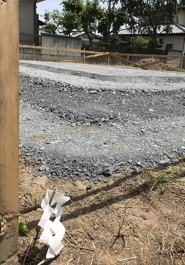 とはいってもまだ丁張りの段階なのでなんとなくの形しか伝わってきませんが、これから基礎、建て方と進むにつれ少しづつ空間が感じられると思うと今から楽しみです。
