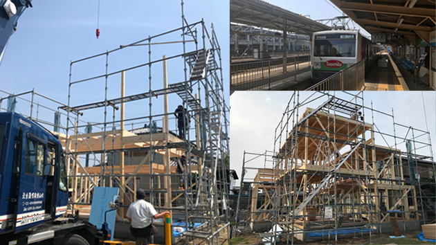 スキップフロアーが多く床のレベルが少し複雑な建物ですが、大工さんのチームワークによってスムーズに棟が上がりました。