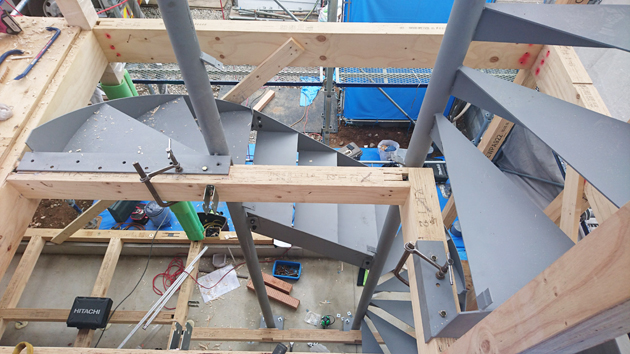 心配していた鉄骨階段もチーム佐野市のメンバーが現場監督とうまく調整しながら納めてくれました。