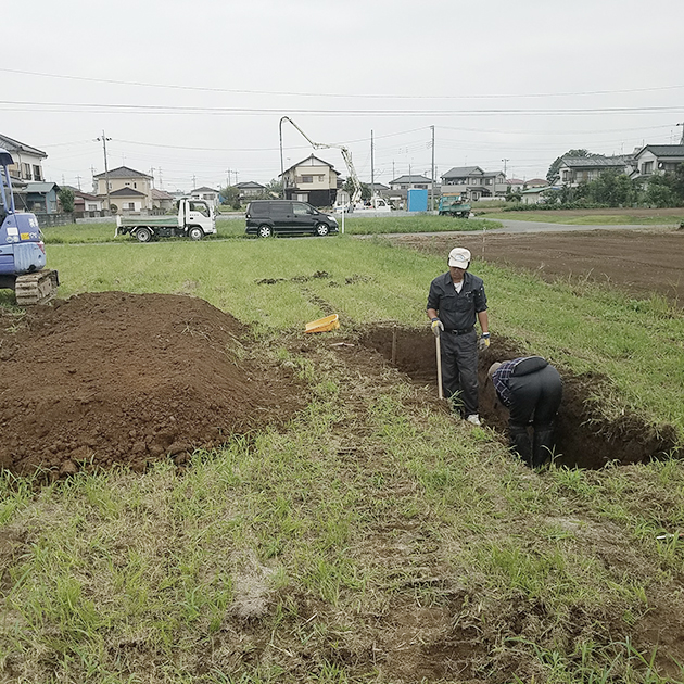 埋蔵文化財包蔵地エリアに該当するため、着工前の試掘調査。
