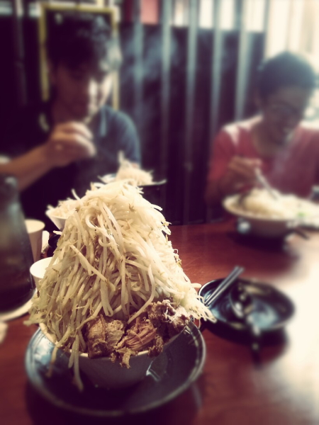 みんなが『豚ダブル野菜まし』などを頼む中、誤って、そして強がって、『豚ダブル増しまし』を注文しました。。。 してしまいました。。。