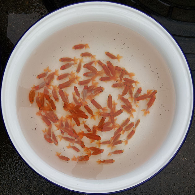 夏にupしたらんちゅうが産卵しその子供達がスクスクと育っています。