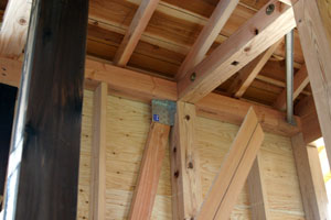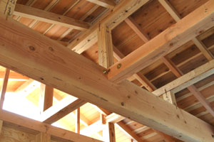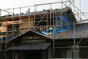 2階の約3分の2を解体し、棟上に当たる工程が終わったため棟梁と現場打合せへ。サッシや垂木などの外装について主に話合いをしました。