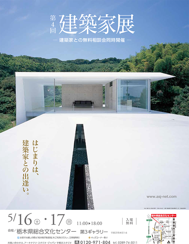 栃木県宇都宮市の栃木県総合文化センターで5月16、17日の2日間行う建築家展に参加します。