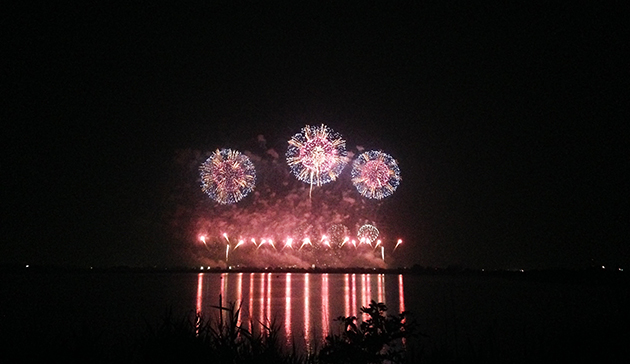 ただ湖畔が目の前のため、映る花火は申し分ないほど綺麗ですが湿度半端ないです。
