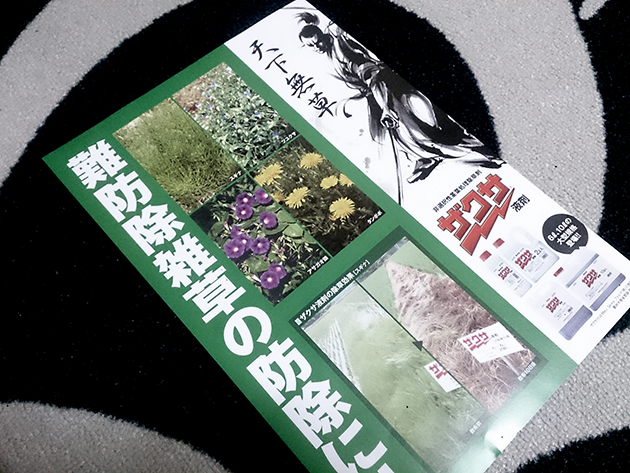 農転の書類を、すいません施主さんに受け取りに行ってもらったのですが、届けてもらったときに持ってきた除草剤のチラシ